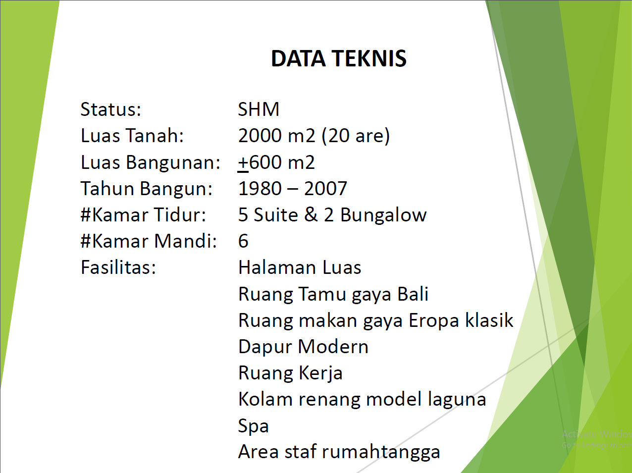 Building : +/- 600 Sqm